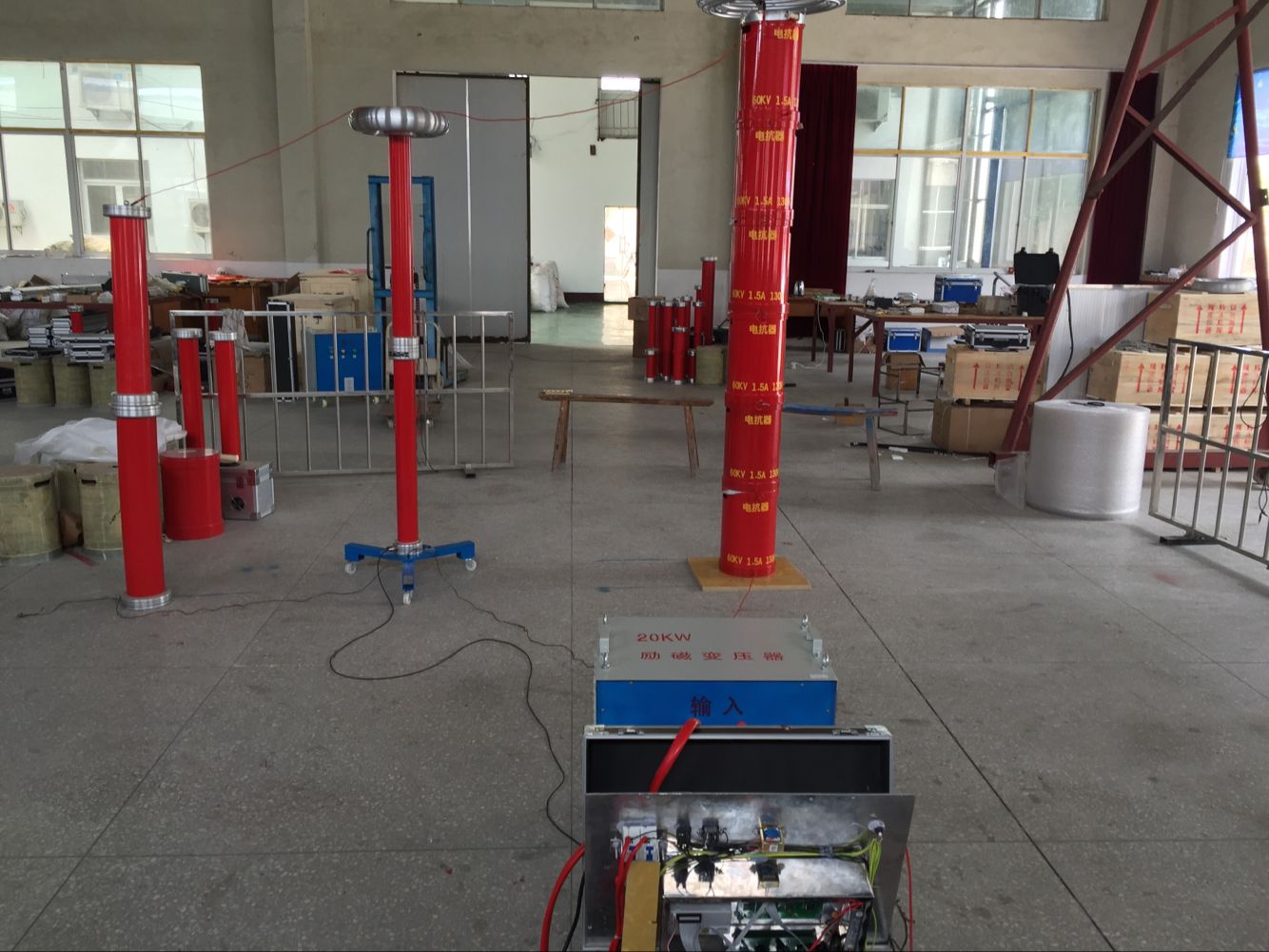 3.1.300mm2/10kv电缆,长度3公里的交流耐压试验,zui高试验电压22kv,为方便搬运,将电抗器分为三节,每节电抗器电压为30KV,每节电流为2A,每节电感量为50H。